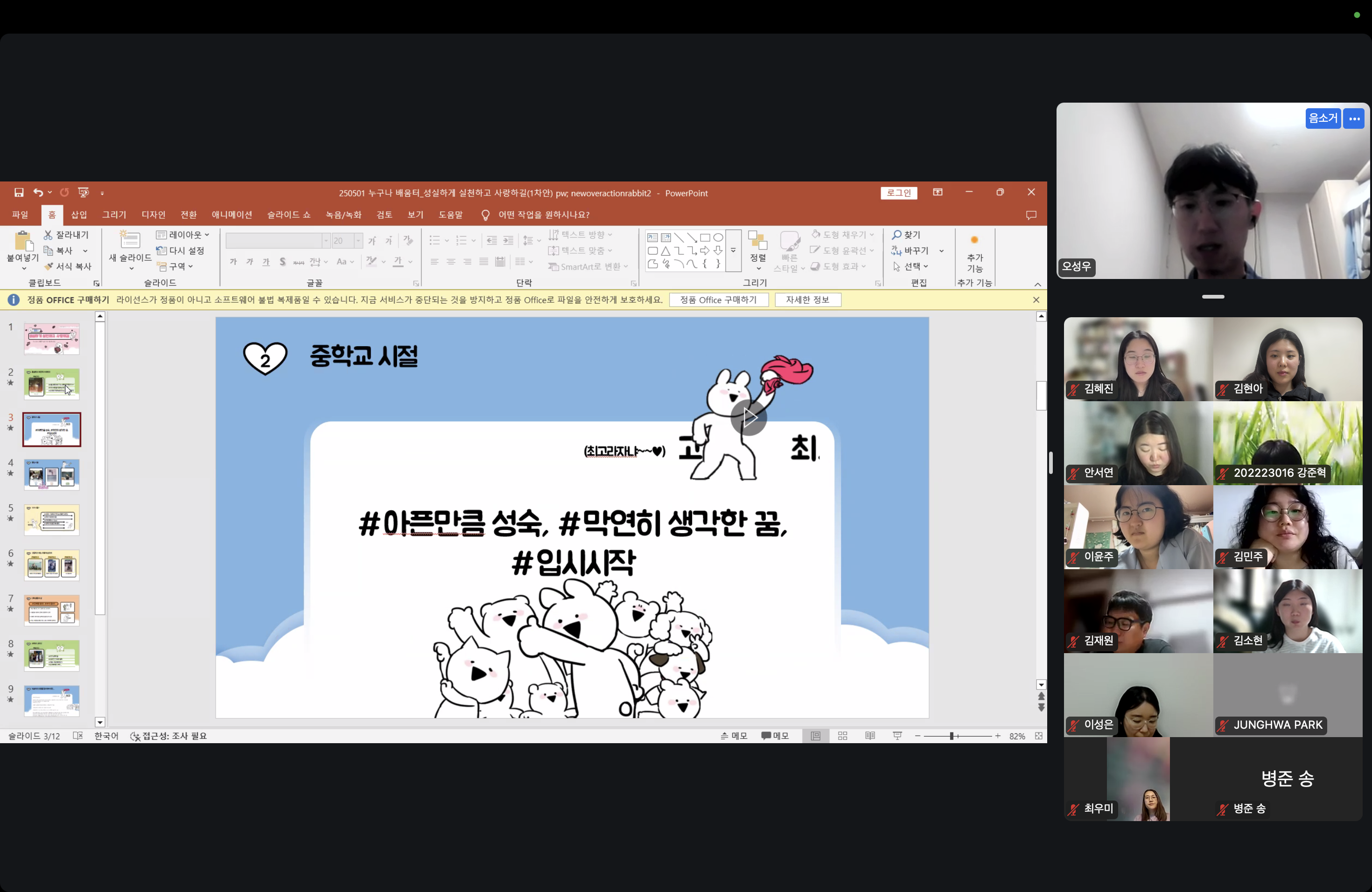 오늘도 일상을 살았다. 오전 업무 마치고 오후에는 월간 실무회의를 4시간이 넘게 진행했다. 조금 지쳤다. 저녁에는 전 직원이 신입 선생님 환영하는 의미로 식사하면서 담소했다. 9시부터는 곧 안동에서 있을 대한민국 청소년박람회 중 청글넷에서 주관하는 북콘서트 준비 회의도 진행했다. 미얀마 지진으로 인한 후원 물품과 후원금 지원은 2차까지 잘 마무리되고 있다.
