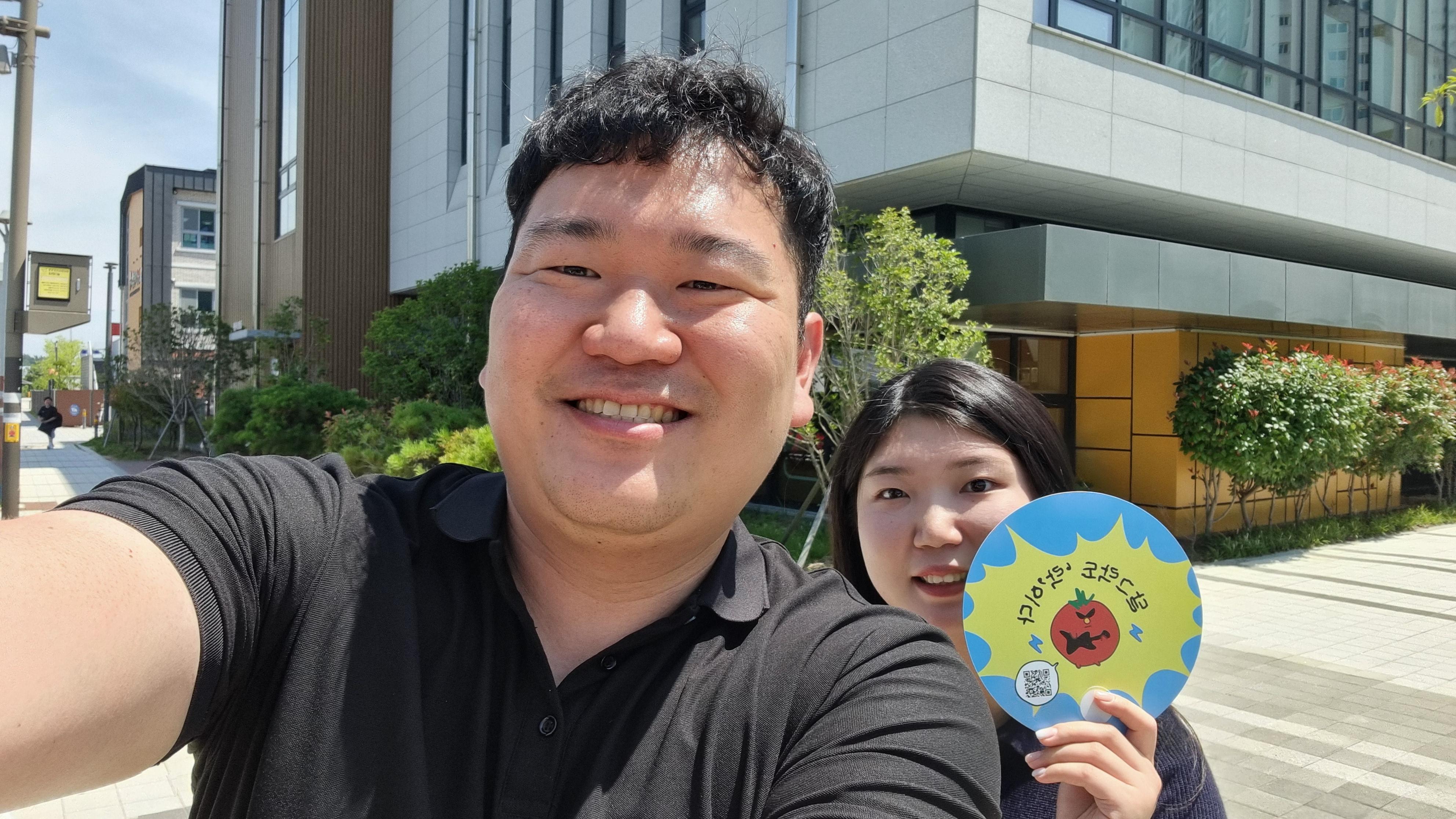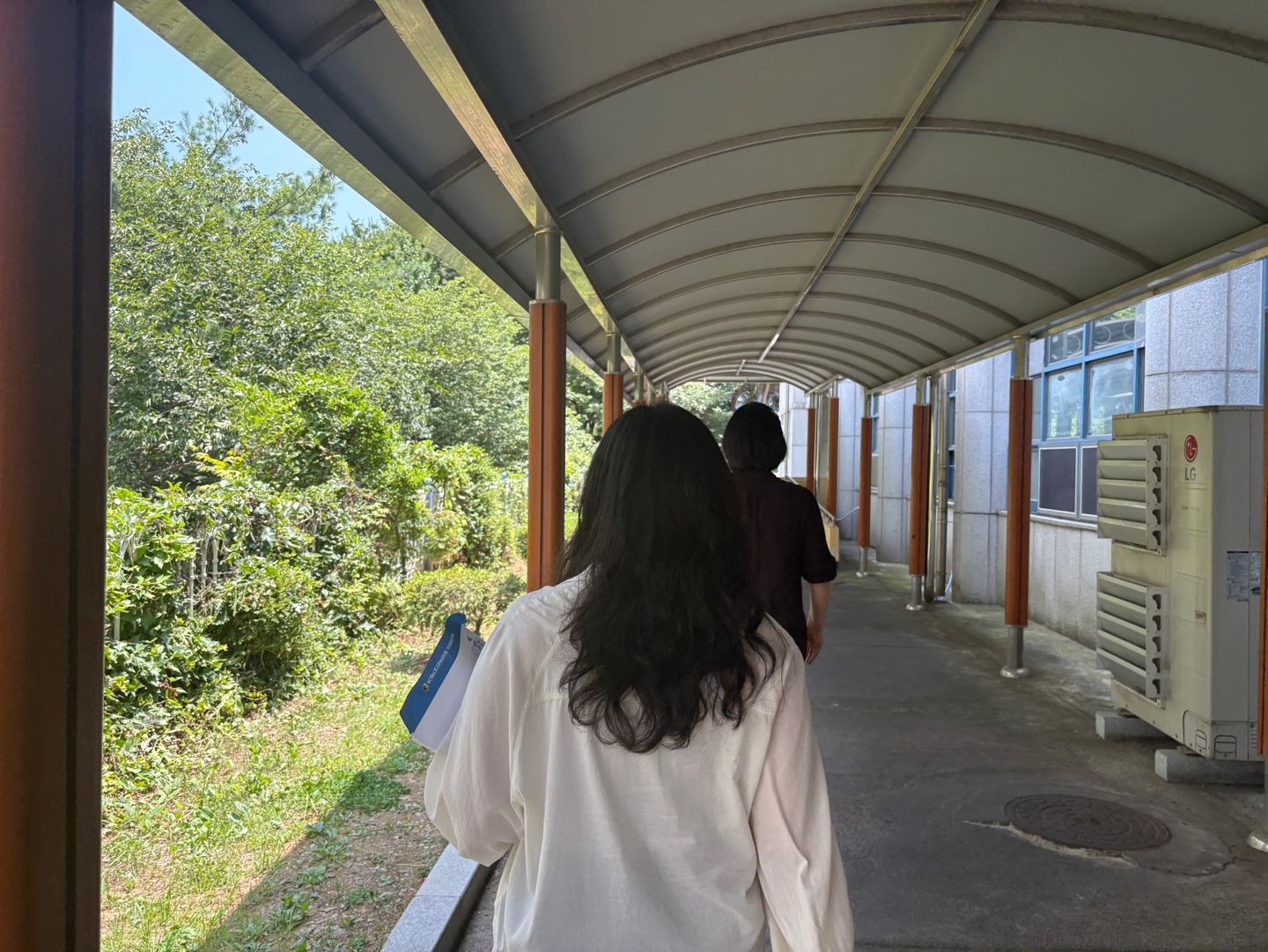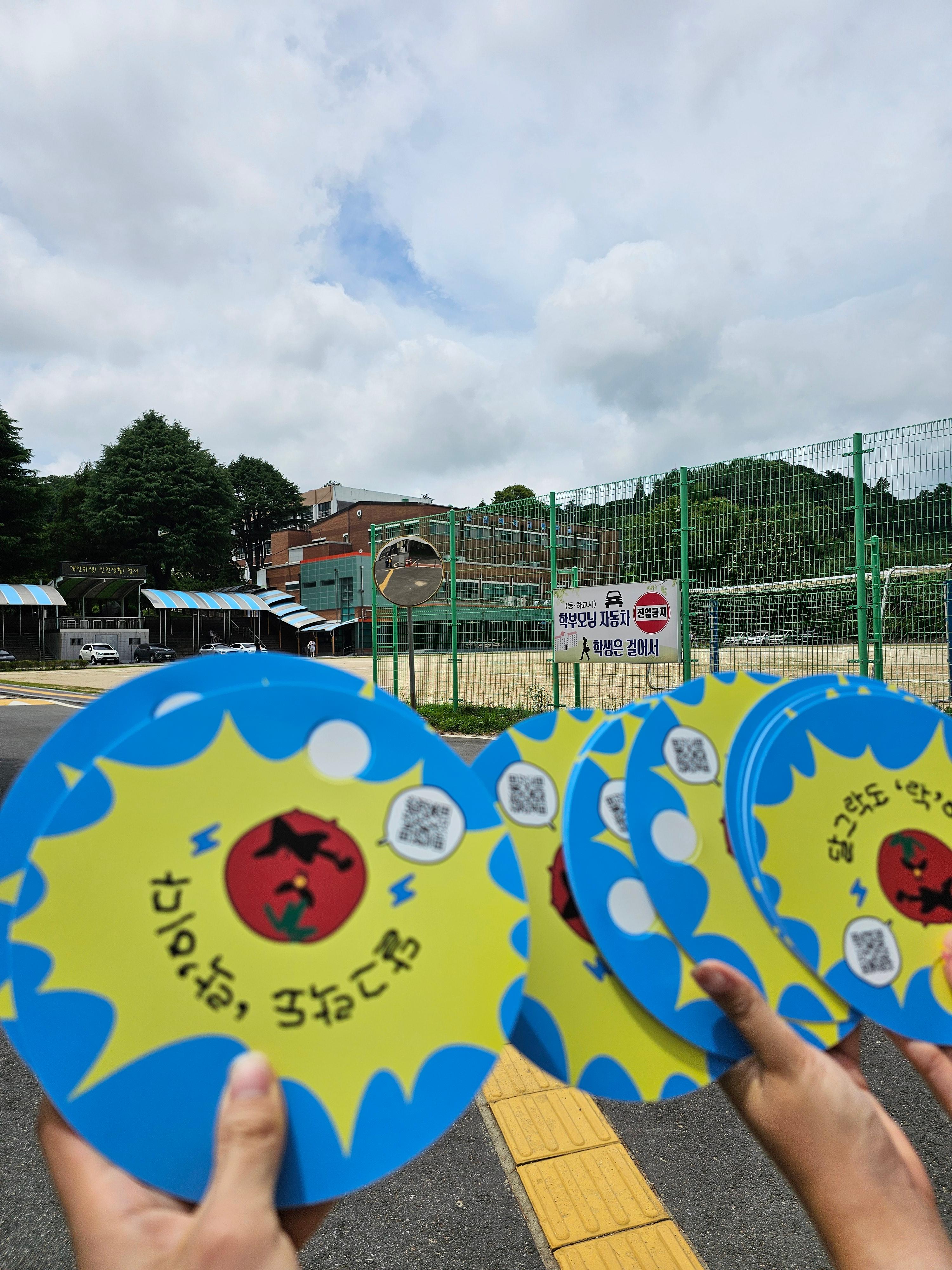 여름에 진행하는 달그락 활동을 다양한 방법으로 안내하고 있다. 학교의 관계자 분들이 도움 주셔서 각 반에 들어가 설명하기도 하고, 시험 기간 도서관에 가서 달그락 부채를 나누어 주면서 QR코드도 안내했다. 자원활동가들과는 학교 마치는 시간에 홍보지를 나누어 주며 설명하고 있다. 후원기관이나 업체, 학교에 부탁해서 홍보지를 부탁하기도 한다. 오늘은 이른 아침, 메이준도 정 선생님과 함께 홍보하러 학교에 나섰다.