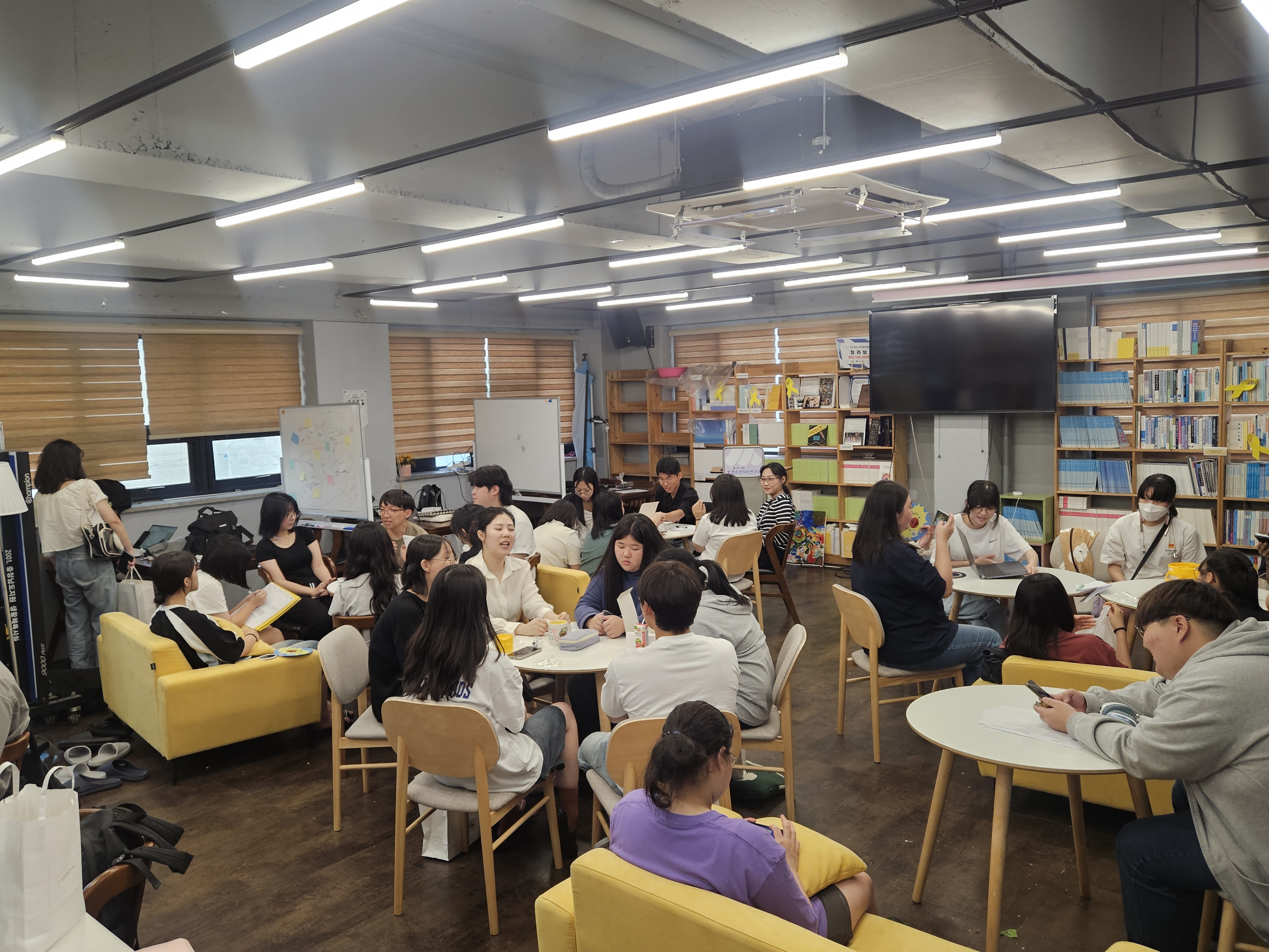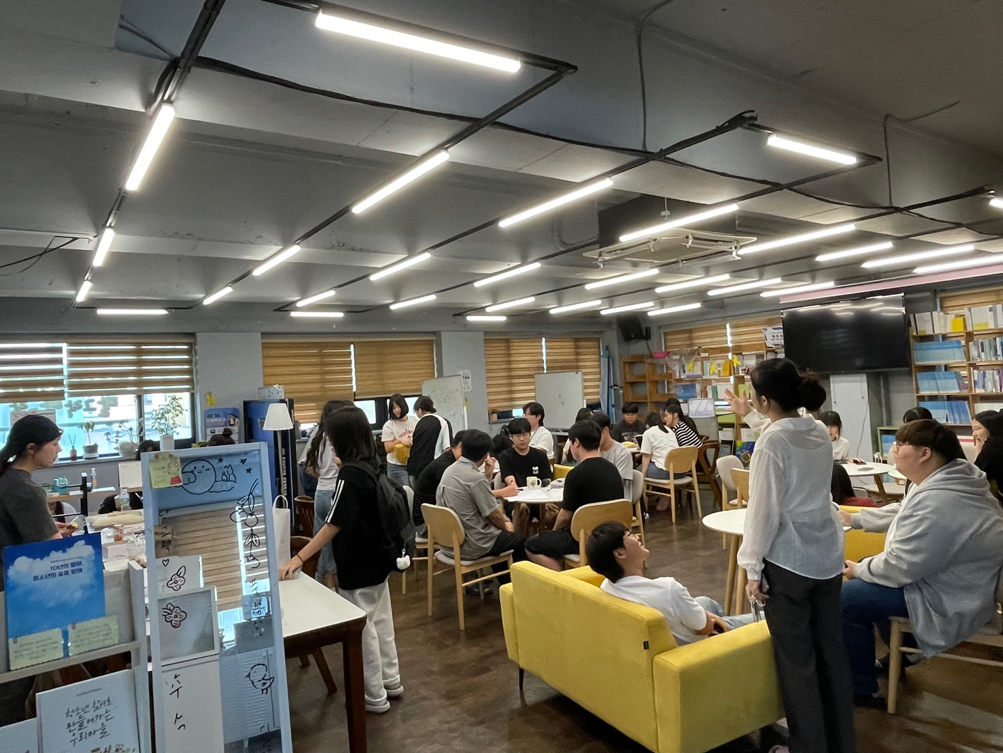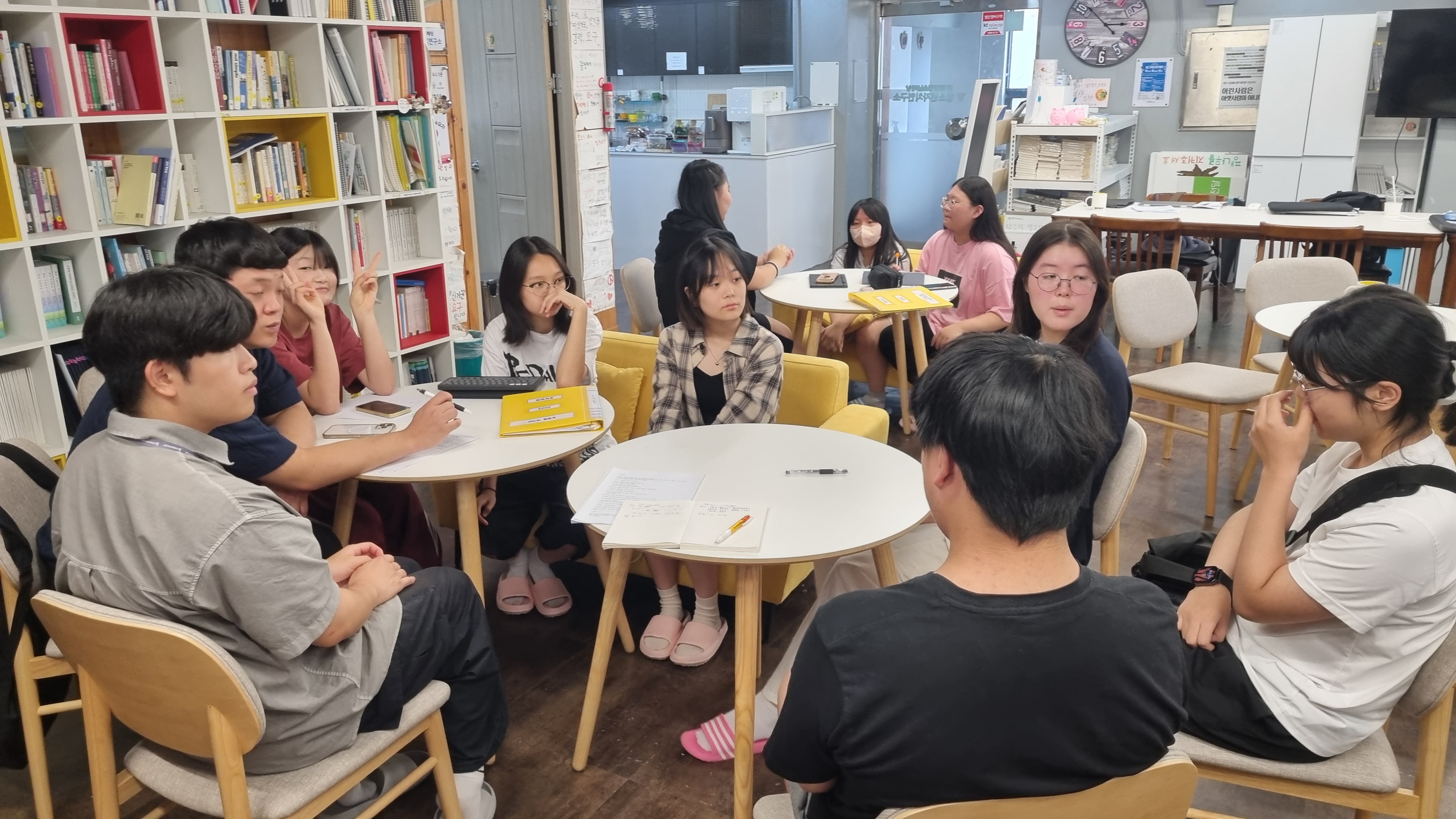 7시가 넘어 청소년을 지원하는 자원활동가 분들과 몇 분 선생님이 곱창 먹으러 갔고, 나머지 청소년들은 달모임 마무리 중이다. 그 사이에 인턴 활동하는 청년들과 대화 중이어서인지 조금 더 분주함이 느껴진다.