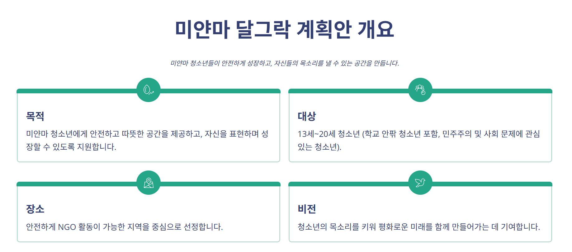 그녀가 꿈꾸는 미얀마의 달그락은 Inner Light(개인 성장의 공간), We Space(공동체 관계의 공간), 시민 참여 공간으로의 Tomorrow Room을 꿈꾼다. 그리고 그 꿈은 이상이 되어 현실이 될 것이다.
