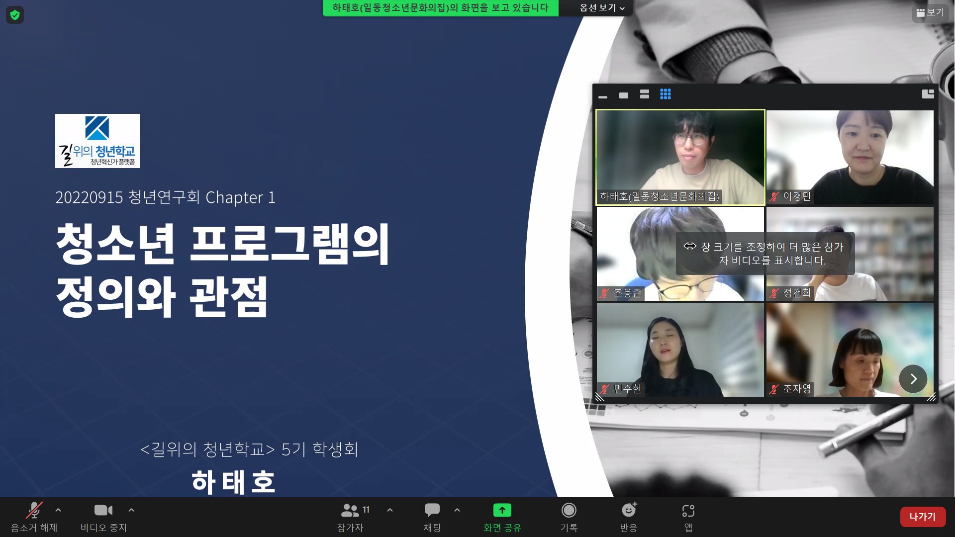 1년여 동안 청소년현장에 대한 자기 삶의 성찰과 함께 곁을 내주며 기댈 수 있는 동료(동지)를 얻을 수 있는 공동체입니다.