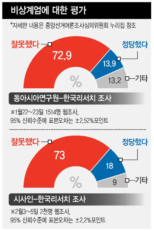 - 강한 정부를 선호하며, 민주주의의 작동 방식에 불만을 가지고 있고, 특정 정당이나 정치 지도자에 대한 정서적 양극화가 강한 사람일수록 계엄을 긍정적으로 평가하는 경향