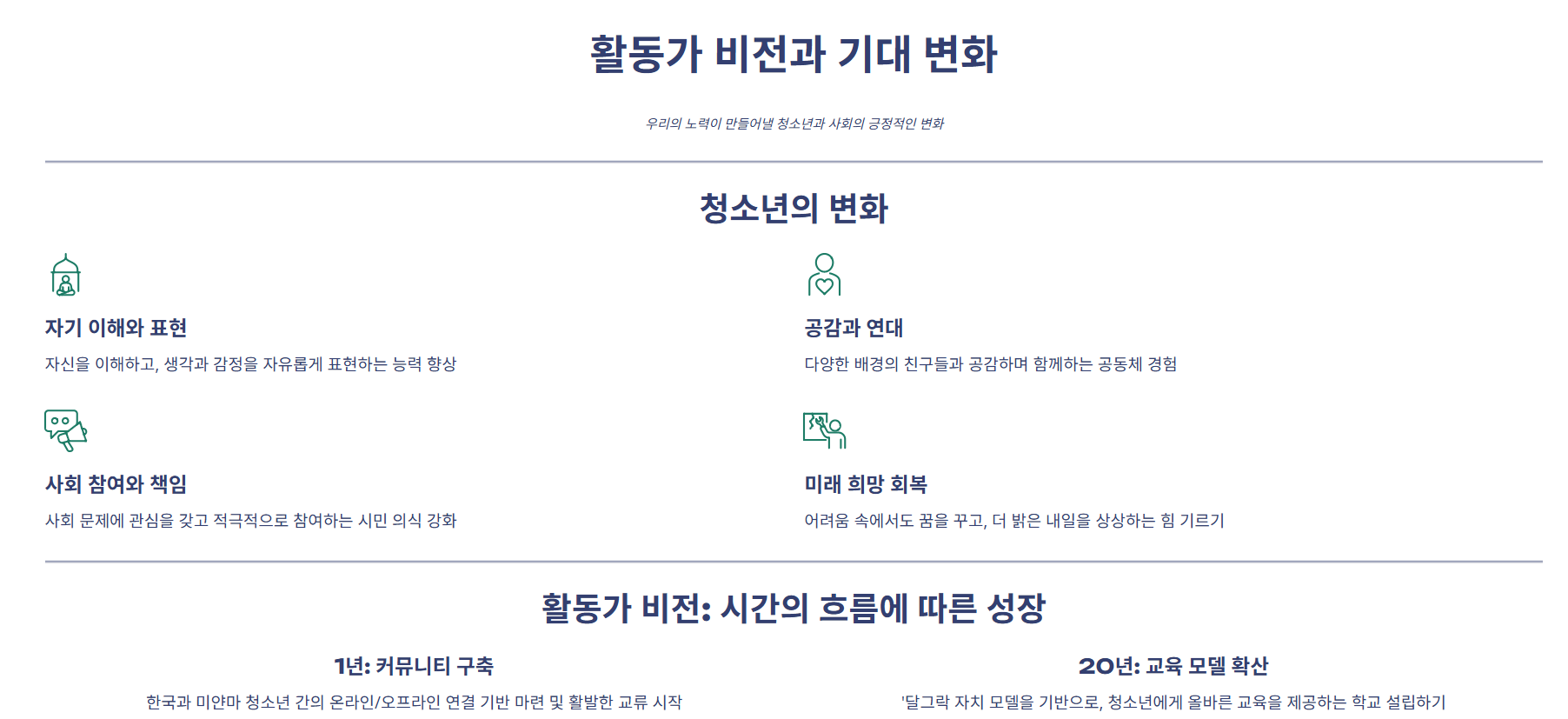 나는 메이의 비전이 반드시 이루어질 것이라고 믿는다. 여러 번의 계엄과 내란, 쿠데타로 나라는 내전으로 치달아 엉망이 되었지만, 그곳에 돌아가서 지역에 “청소년의 목소리를 키워 평화로운 미래를 함께 만들어 가는 데 기여”하는 게 비전이라고 했다. 메이를 보면서 최 위원님은 ‘연대’와 ‘다정함’이 세상을 바꿀 것이라고도 했다. 김 이사님은 자신도 딸을 키우는데 너무 힘겨운 길을 가는 것 아니냐면서 눈물 지었다.