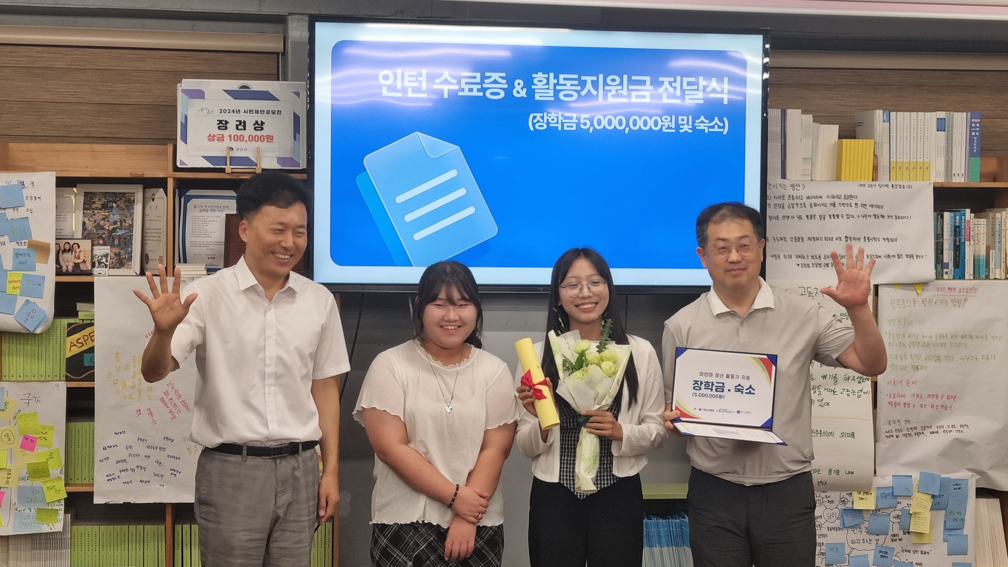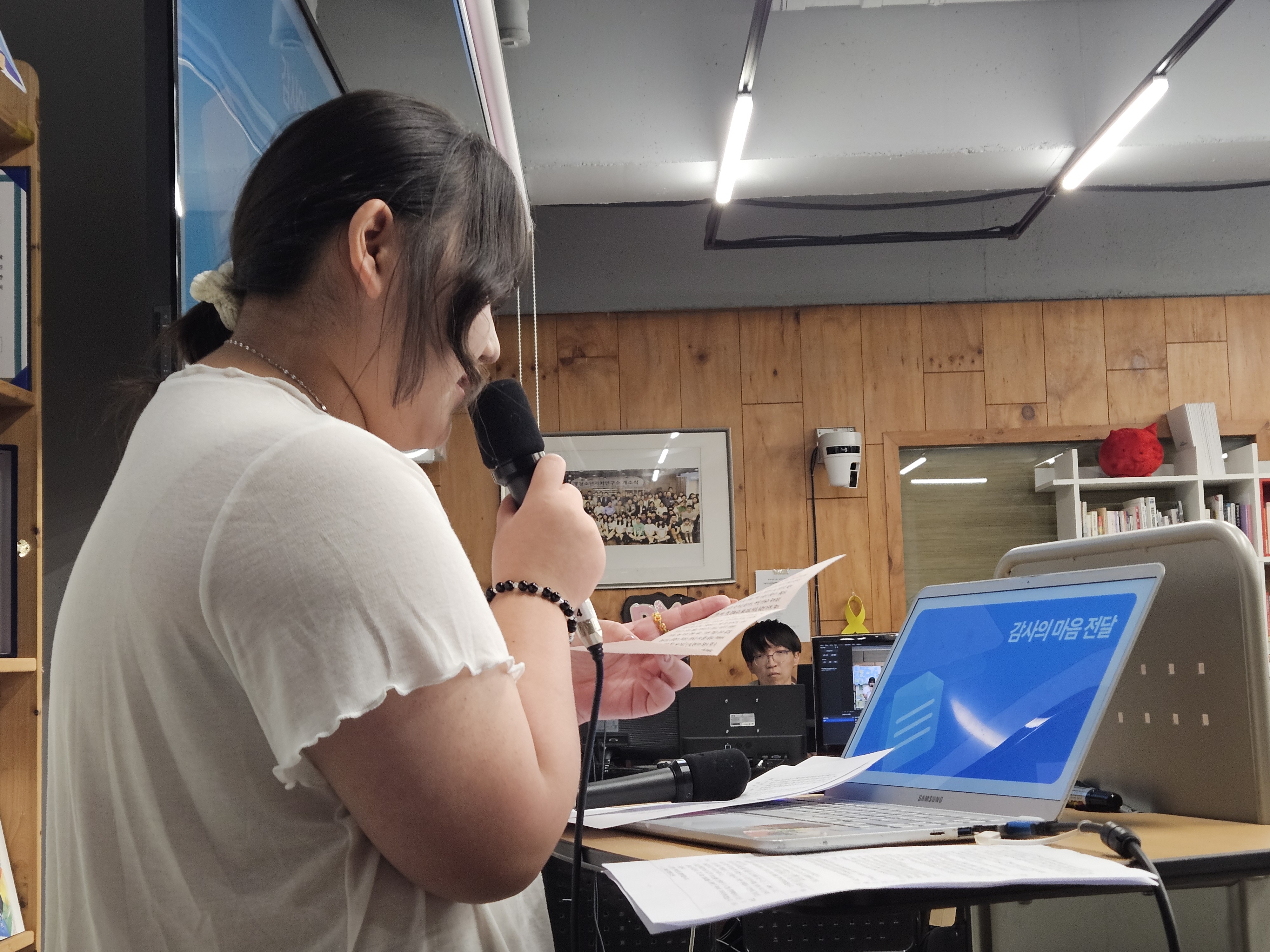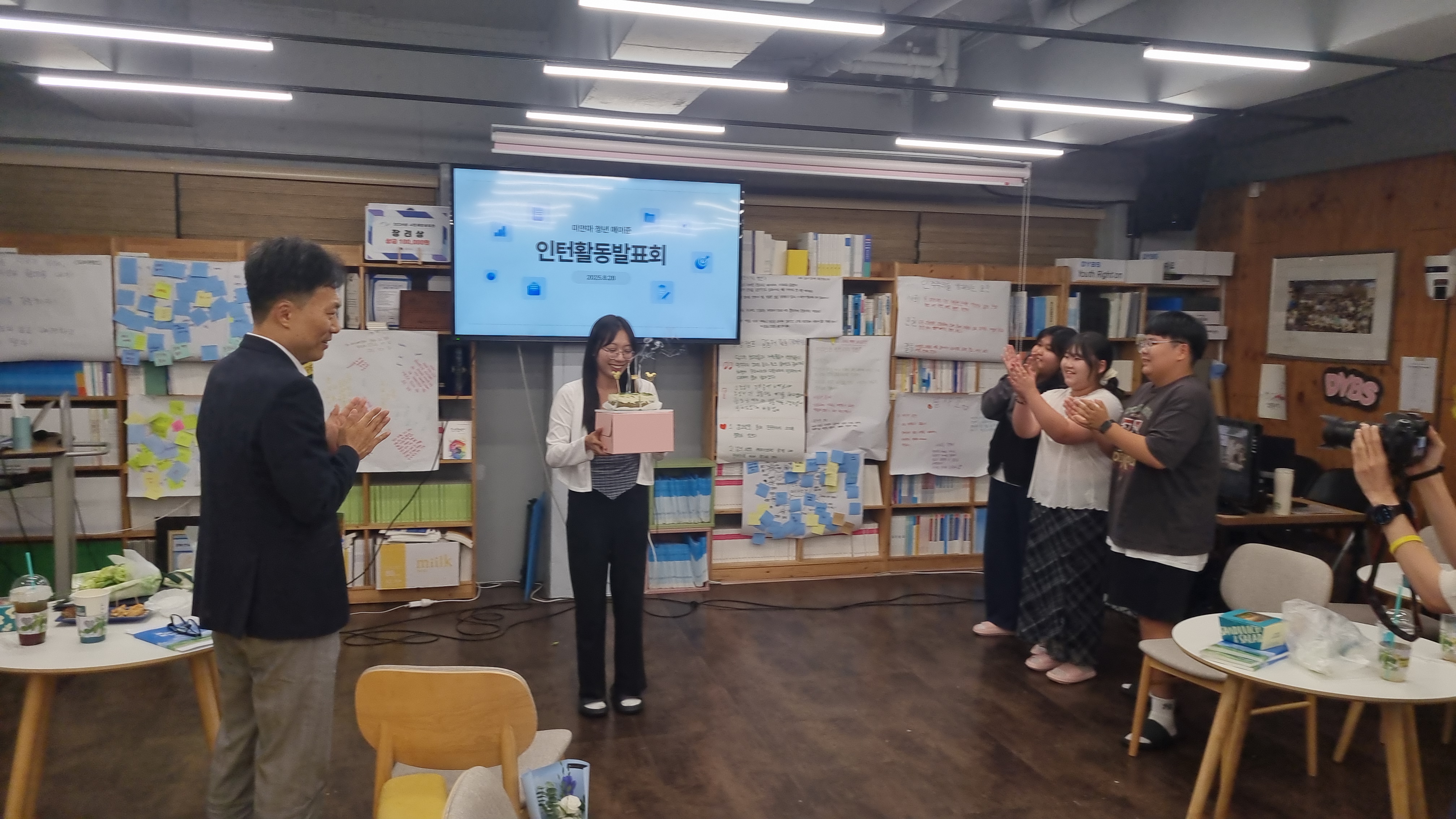 우리 메이준이 두 달여의 달그락 인턴 활동을 마치고 최종 발표회를 했다. 위원, 이사님들 몇 분과 청소년 대표 등이 함께했다. 울지 않으려고 했다는데...