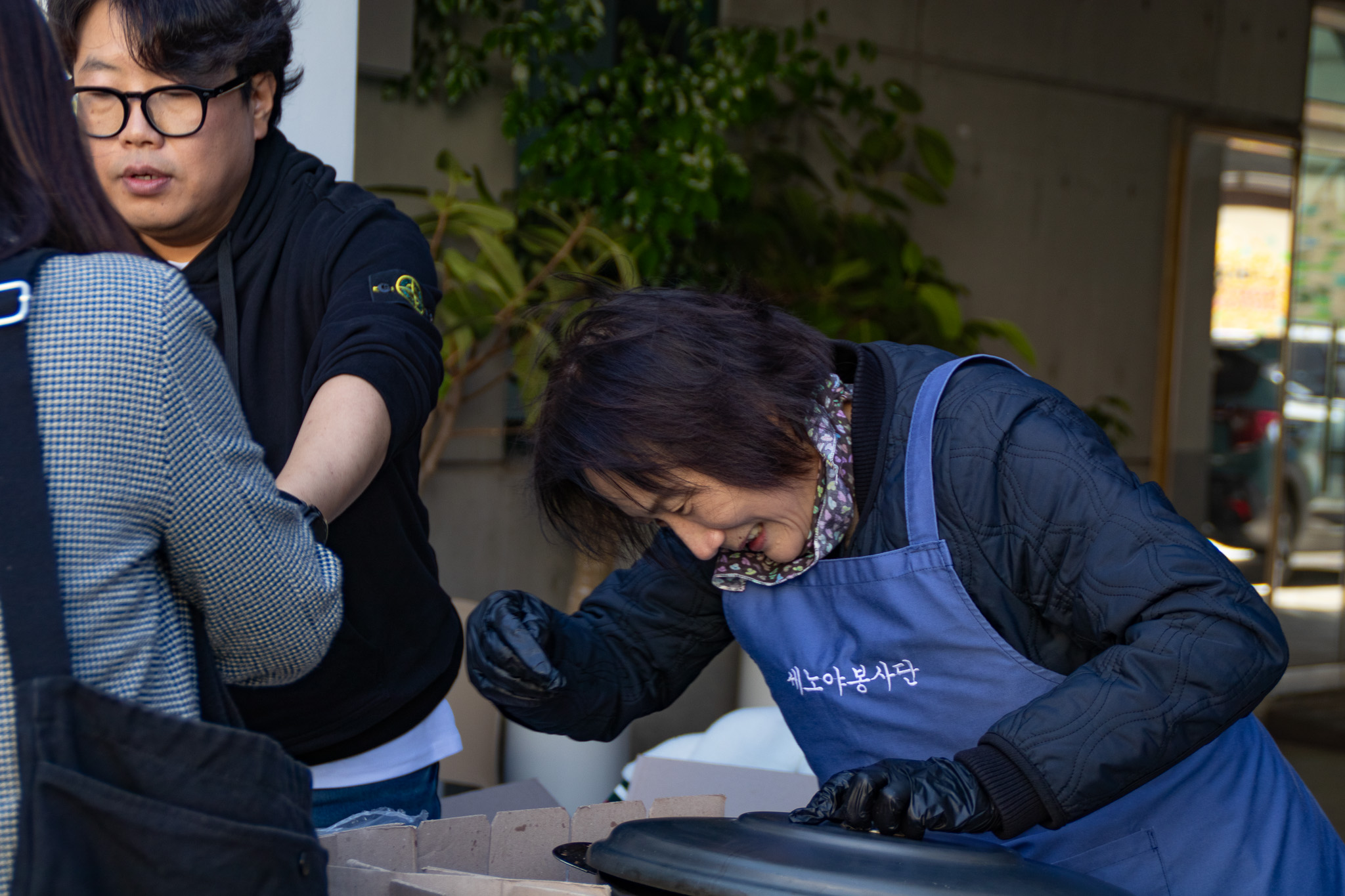 김 이사님의 들깨 파스타는 거의 모두 팔려 나갔고, 우민회관에서 지원한 육개장과 음식은 채영숙 회장님과 세노야 봉사단 분들이 도움 주셔서 판매가 이루어졌다. 한쪽에서는 세광교회 청년들도 달그락 자원활동가인 청담 청년들과 함께하면서 떡을 굽고 옥수수를 찌고 나누었다. 음식은 거의 모두 팔렸다.