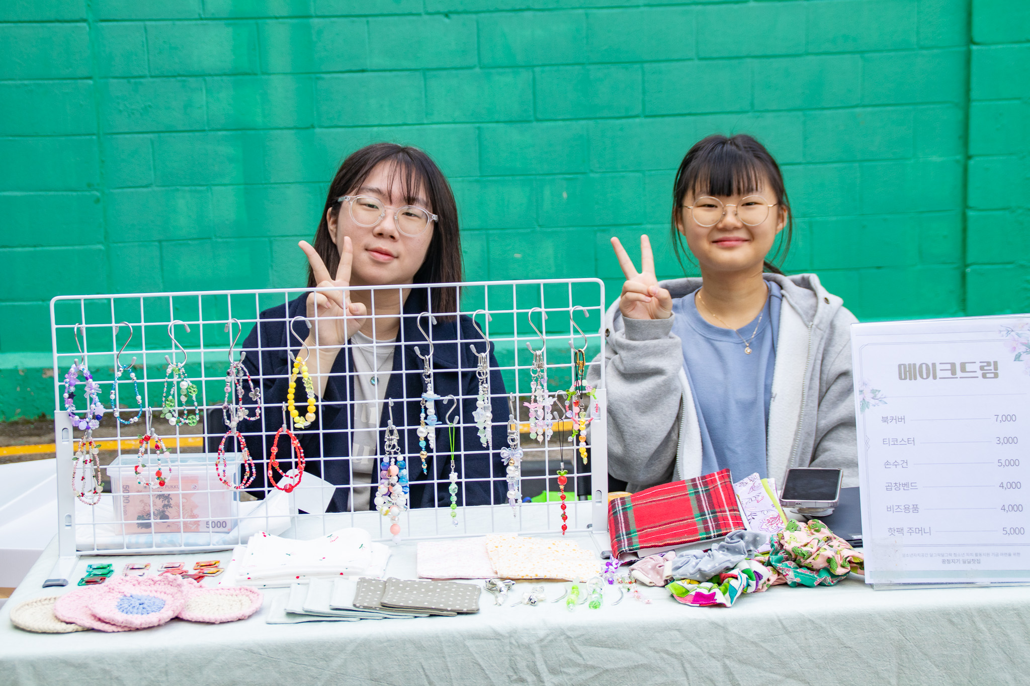 청소년들 플리마켓에 구제옷과 만든 수공예품, 그리고 김 선생님과 기증받은 책을 모아서 판매했다. 안산 법인에서 후원받은 청바지와 청자켓, 후원자님들이 보내주신 옷, 그리고 오전에 세광교회 손 목사님과 미디어위원회 유 위원님도 직접 오셔서 안마기 등 여러 물품을 기증해 주셨다. 이 모든 활동은 청소년들 중심으로 오늘 참여한 분들께 안내되었다.