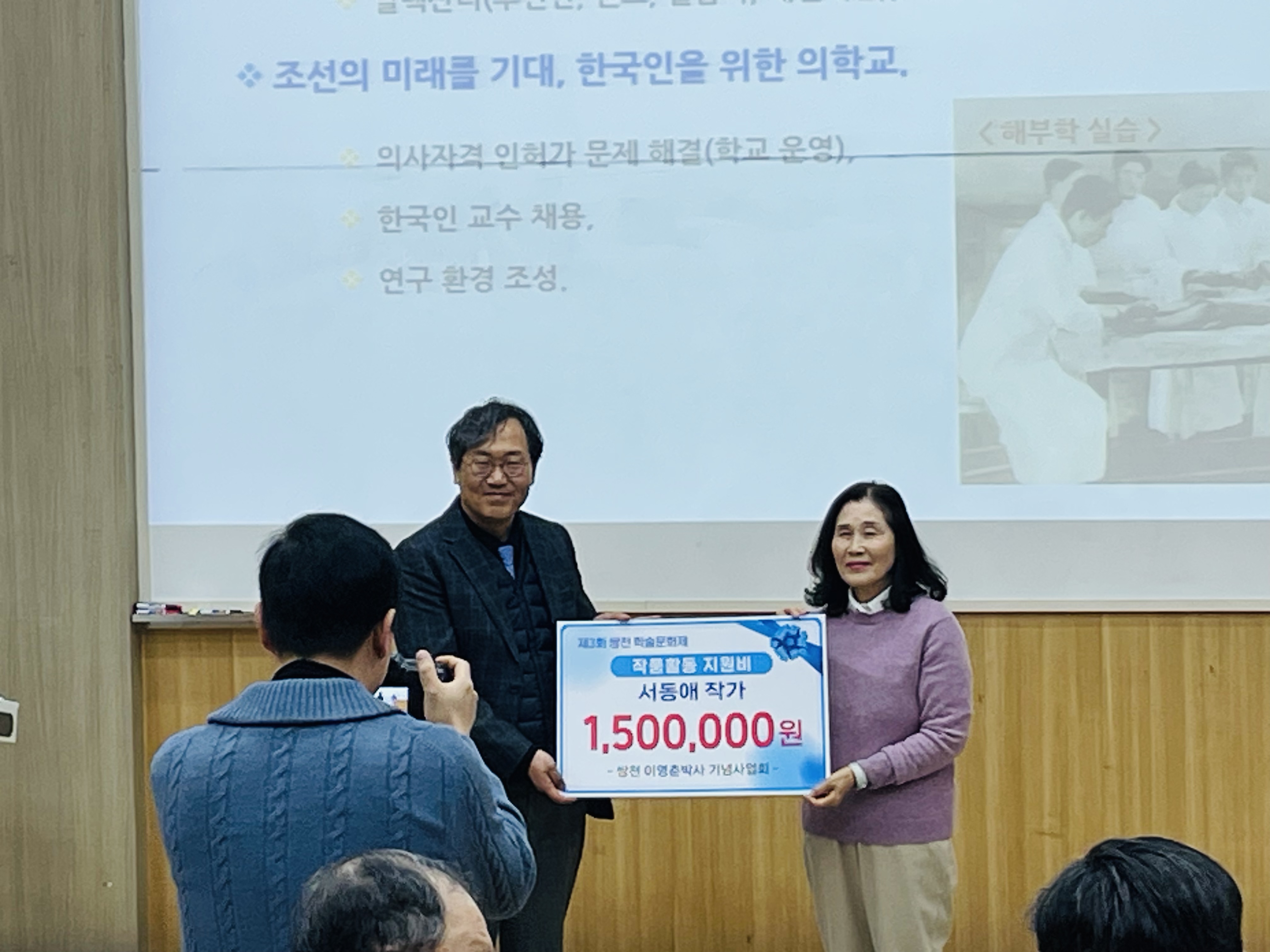 서동애 작가님은 이전에 강의하던 대학에서 만나 알게 됐다. 오래전이다. 그때의 인연이 이어져 몇 년 전 현장에서 선생님들 글 쓰고 책 출판하는 네트워크(청글넷)를 만들어 운영을 시작할 때 참여하셨다. 새벽 글모임에 들어오셔서 새벽마다 만나며 꾸준히 관계하게 됐다. 청글넷 참여하면서 동화작가로 글을 쓰고 계신다는 것을 알았고, 달그락에서 열린 청글넷 송년회 때 참여하면서 이강휴 이사장님께 쌍천도 소개받고, 그 인연으로 청소년 대상의 쌍천 이영춘 박사님의 책을 쓰게 되었다. 그 인연이 이어져 오늘 군산대학교에서 열린 쌍천 학술문화제에서 시상을 하게 되었다. 서 작가님 책은 곧 출판된다.