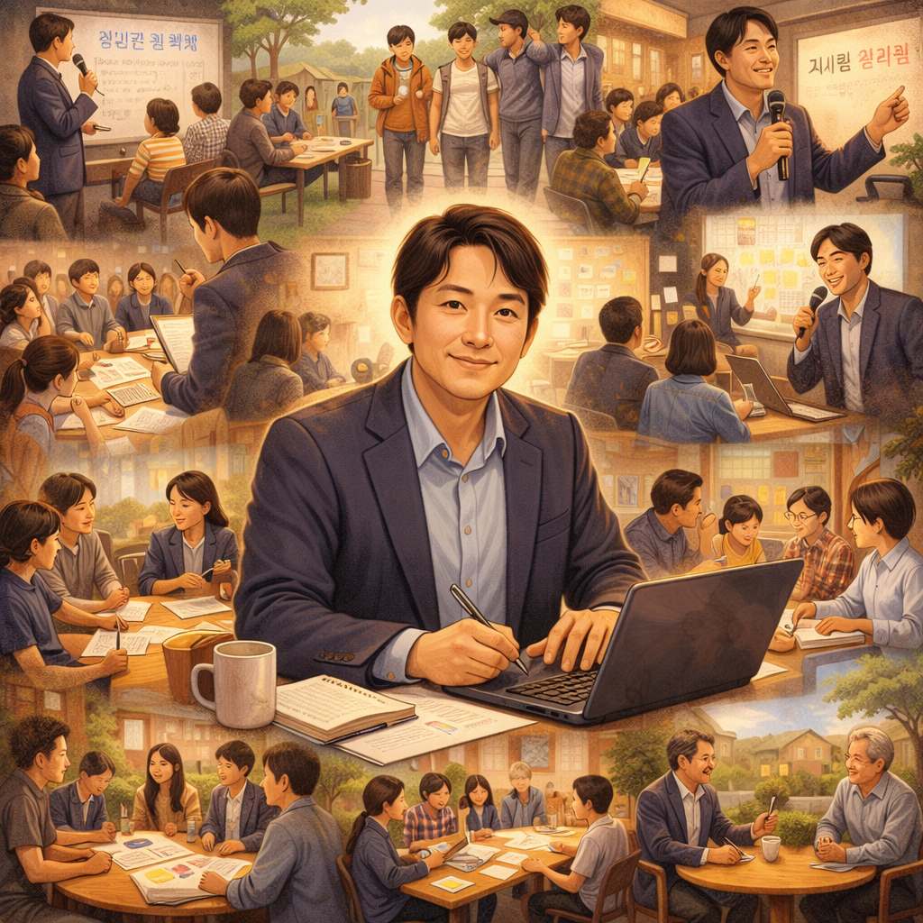 챗지피티에게 “나의 지난 2025년 1년 동안의 활동을 그림으로 그려 줘”라고 요청했더니 이 그림이 나온다. AI가 알고 있는 내 삶의 상당 부분이 사람들과의 모임 안에서 움직이고 있었다. 줌(Zoom)까지 포함하면 1년의 대부분을 모임(조직)에서 이루어졌다고 봐도 무방할 정도다. 특히나 달그락 내의 청소년들의 자치기구 모임, 위원회, 이사회, 자원활동가, 후원자, 법인내 실무와 이사그룹까지 수많은 모임이 있다.